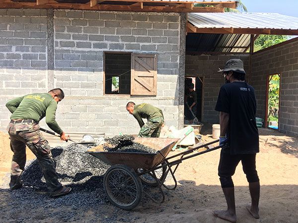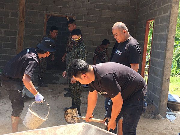 โดยในวันนี้นอกจากจะมาร่วมแรงร่วมใจช่วยกันสร้างบ้านแล้ว ทางมูลนิธิฯ ยังได้มอบเงินสมทบทุนในการก่อสร้างบ้านให้น้องเป้ยด้วยซึ่งการสร้างบ้านในครั้งนี้ได้รับความสนับสนุนจาก นายสิทธิชัยโควสุรัตน์ ที่ปรึกษาบริษัท ส.เขมราฐ อินดัสตรี้ จำกัด,นายสมชัย บูรณะ นายอำเภอน้ำยืน ,นายประจักษ์แสงคำ สจ.เขตอำเภอน้ำยืน ,นางสาวศิริพร ถาวร ผอ.โรงเรียนบ้านแปดอุ้ม ,นายสมศักดิ์ บุญประชม ผู้จัดการ หจก.อุบลลำปาง อุบลศรีสมหวัง ,นายศิริศักดิ์ นพศิริ ผู้จัดการน้ำยืนวัสดุรวมทั้งพ.อ.จักรพงศ์ จันทน์สุทธิประภา ผู้บังคับหน่วยเฉพาะกิจที่ 1 กองกำลังสุรนารี ได้จัดกำลังพลเข้ามาร่วมช่วยสร้างบ้านในวันนี้และยังมีเจ้าหน้าที่จากกองร้อย อส อ.น้ำยืนที่ 8 จ.อุบลราชธานี มาร่วมด้วยคาดว่าจะสร้างแล้วเสร็จภายในระยะเวลาอันใกล้นี้