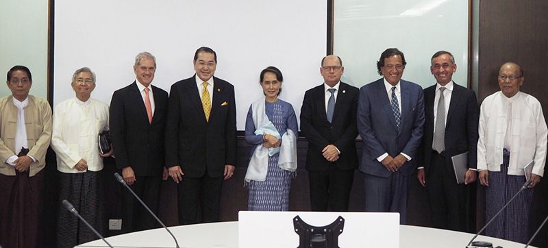 ศ.ดร.สุรเกียรติ์ เสถียรไทย ประธานคณะที่ปรึกษาการนำเสนอเรื่องรัฐยะไข่ไปปฏิบัติ เข้าพบ ออง ซาน ซู จี ที่ปรึกษาแห่งรัฐเมียนมา