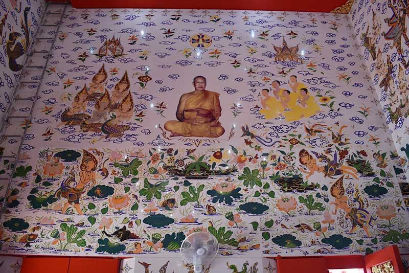 ต้องไปชมสักครั้ง! วัดดังอ่างทองสร้างโบสถ์ด้วยกระเบื้อง วาดลวดลายเล่าตำนานพุทธศาสนา