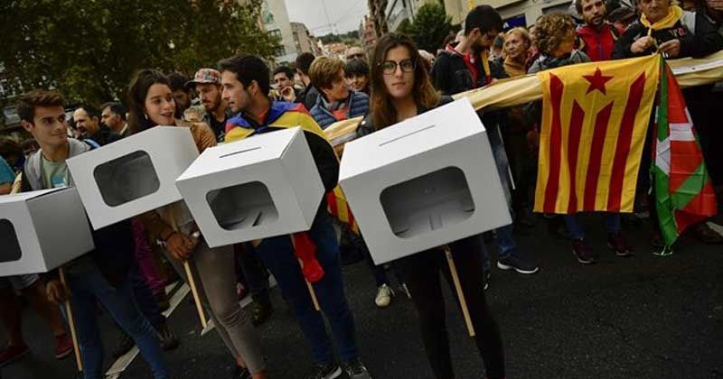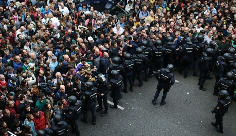 สถานการณ์ตึงเครียด และมีความวุ่นวายอย่างหนักทางการเมือง เมื่อรัฐบาลกลางสเปน ส่งกองกำลังเข้าสลายการลงประชามติ และภาพที่ปรากฏออกไปทั่วโลก็คือ การใช้กระบองทุบตีประชาชน มีการยิงปืนด้วยกระสุนยาง และการใช้แก๊สน้ำตา เพื่อสลายฝูงชน