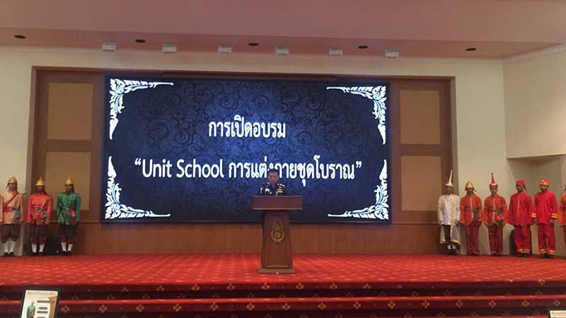 พล.ต.กฤษณ์ดนัย กล่าวเปิดพิธีว่า การเปิดหลักสูตร “unit school แต่งชุดโบราณ” ในวันนี้ เป็นส่วนหนึ่งในราชพิธีถวายพระเพลิงพระบรมศพ พระบาทสมเด็จพระปรมินทรมหาภูมิพลอดุลยเดช และเพื่อให้สมพระเกียรติในราชพิธีการแต่งกายของผู้ปฏิบัติในริ้วขบวนต้องดูสง่างาม สมจริงตามพระราชประเพณีที่สุด จึงเป็นโอกาสที่ดีเจ้าหน้าที่จากสำนักพระราชวังมาให้ความรู้ความเข้าใจในการแต่งกายให้ถูกต้องตามพระราชประเพณี เพราะฉะนั้น ทุกคนต้องให้ความสนใจ ทำความเข้าใจ เพื่อไปถ่ายทอดกับกำลังพลที่ต้องแต่งกายดังกล่าวด้วย