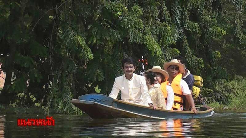 สายน้ำมิอาจกั้น!บ่าวสาวนั่งเรือฝ่าน้ำท่วมสูงแต่งงาน