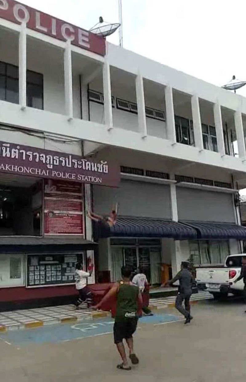 โซฟาช่วยชีวิต! สาวป่วยปีนระเบียงชั้น3โรงพัก พลัดตกเจ็บ (ชมคลิป)