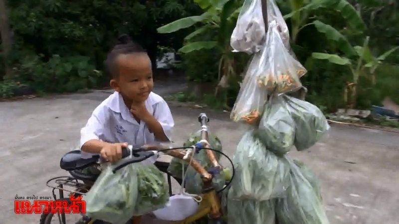 นางวรรณีย์ ย่าของ ต๋อง บอกว่า ต๋องเริ่มออกไปขายผักตั้งแต่เริ่มเรียนชั้น ป.2 แทนคุณทวดชาย ซึ่งมีอายุมากและล้มป่วยปั่นจักรยานไม่ไหว ส่วนตัวเองก็มีปัญหาสุขภาพเช่นกัน จึงให้ ต๋องไปขายแทน บางวันก็ออกไปขายตั้งแต่ตี 5ก่อนไปโรงเรียน บางวันก็หลังเลิกเรียนและวันเสาร์อาทิตย์ก็มี แล้วแต่ว่า วันไหนจะมีผักหรือไม่ ขายเสร็จก็จะซื้อขนมซื้อของมาฝากย่าฝากทวด และในช่วงที่ตนไม่อยู่ ต๋องก็จะเป็นคนดูแลทวดทั้งสองคนแทน