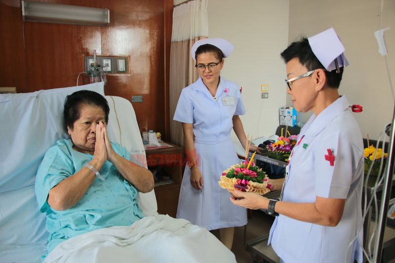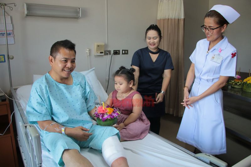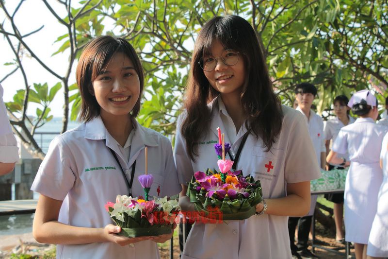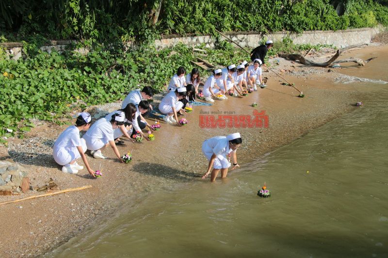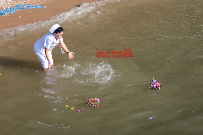 ‘หมอ-พยาบาล’ศรีราชา นำกระทงให้ผู้ป่วยอธิษฐานถึงเตียง ก่อนช่วยนำไปลอย
