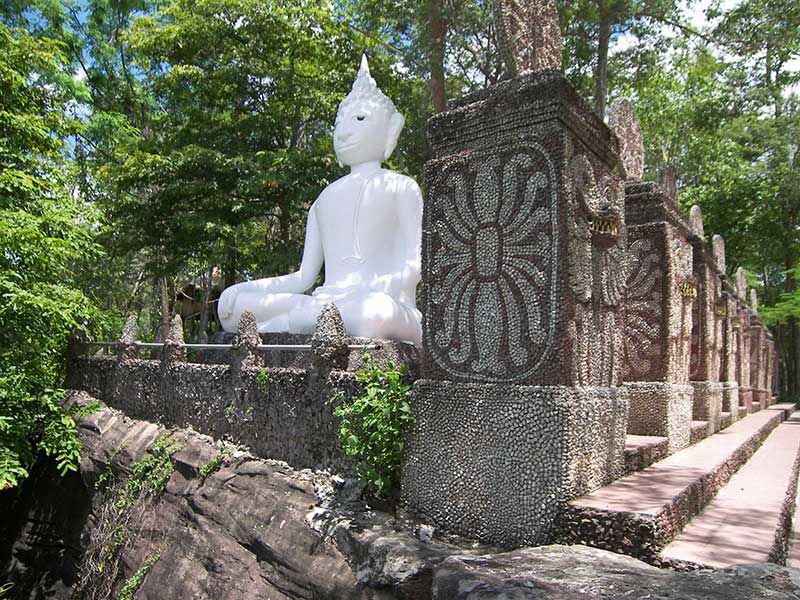 ต่อมา ปี พ.ศ.2542 พระอาจารย์ปัญญา เจ้าอาวาสองค์แรก ร่วมกับชาวบ้าน ก่อสร้างเจดีย์ทำจากหินภูเขาสีขาว ที่ชาวบ้านคัดแยกขนาดตามต้องการ ติดกับโครงสร้างรูปร่างเจดีย์นับพันนับล้านก้อนกลายเป็นรูปร่างเจดีย์หินพันล้านก้อน มีความสูง 30 เมตร ฐานกว้าง 20 เมตร ซึ่งภายในเจดีย์เป็นที่สำหรับปฏิบัติธรรมประกอบพิธีทางศาสนา และยังเป็นที่ประดิษฐานพระพุทธรูปและรูปหล่อพระเกจิอาจารย์ชั้นนำที่มรณภาพไปแล้ว เช่น หลวงปู่เสาร์ หลวงปู่มั่น หลวงปู่ฝั้น หลวงปู่ชา เป็นต้น และภาพเขียนประวัติพระพุทธเจ้าอย่างสวยงาม อย่างที่ปรากฏให้เห็นในปัจจุบัน