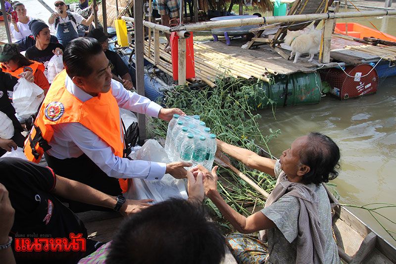 ‘ถั่วแระ เชิญยิ้ม’ขำไม่ออก ตกน้ำหัวทิ่ม ขณะแจกของผู้ประสบภับน้ำท่วมกรุงเก่า