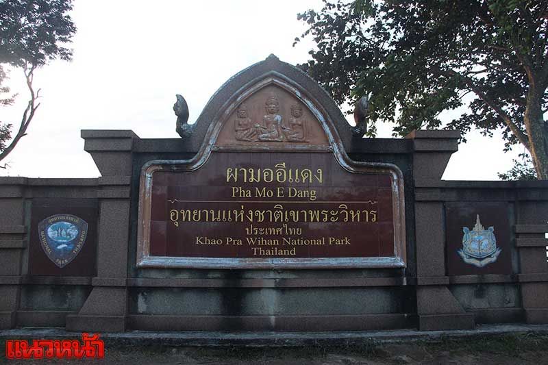 โดยที่จุดชมวิวผามออีแดง อช.เขาพระวิหาร ต.เสาธงชัย อ.กันทรลักษ์ จ.ศรีสะเกษ อากาศเย็น อุณหภูมิต่ำสุด 19 องศาเซลเซียส มีหมอกบางและลมพัดเบาๆ ซ่งนักท่องเที่ยวจำนวนมากต่างขึ้นชมทิวทัศน์ตะวันขึ้นสามแผ่นดิน โดยขึ้นจากประเทศลาว ส่องแสงไปยังประเทศกัมพูชา และมาประเทศไทย ซึ่งในเช้านี้ตะวันขึ้นสวยงาม.