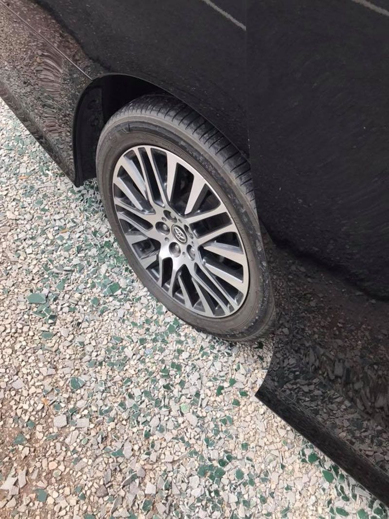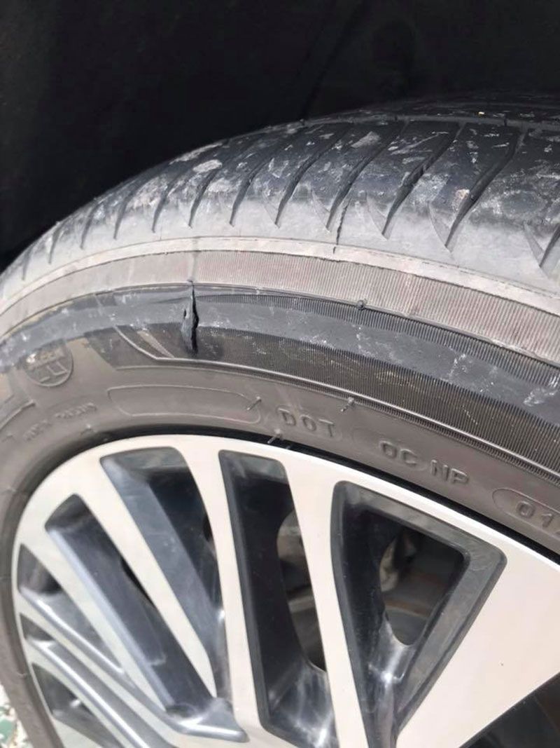 แต่เมื่อเจ้าของรถเดินผ่านมาอีกร้าน ห่างกันแค่ 15 ก้าว ขายพวงมาลัยแบบเดียวกัน 50 บาท ธูปชุดละ 20 บาท น้ำมันขวดละ 15 บาท หากรวมกันราคาแค่ 240 บาท แต่ก็ไม่ได้คิดอะไร จนไปไหว้พระและกลับมาที่รถ ก่อนขับออกไปประมาน 10โล ก็สังเกตุได้ว่ารถมันแปลกๆ มีเสียงเหมือนบดอะไรอยู่ เราก็ค่อยๆๆชะลอ จึงจอดรถดูพบยางรถมีรอยกรีดชัดๆ ซึ่งดูแล้วเป็นรอยกรีด 10 เปอร์เซ็นต์ สักพักผมก็โทรหาร้านยางตรงหนองปลาตะเพียน เพื่อขอความช่วยเหลือ ไม่เกิน 15นาที ก็มาเปลี่ยนยางอะไหล่ไห้ผม ทางร้านก็ช่วยดูรอยนี้มันคือรอยกรีด 100% แล้วทางร้านยังบอกอีก ทีลานจอดประจำ เดียวรถหาย โดนขูด ขายของแพง ชัดเลย แบบนี้