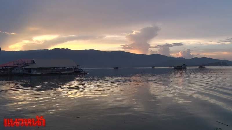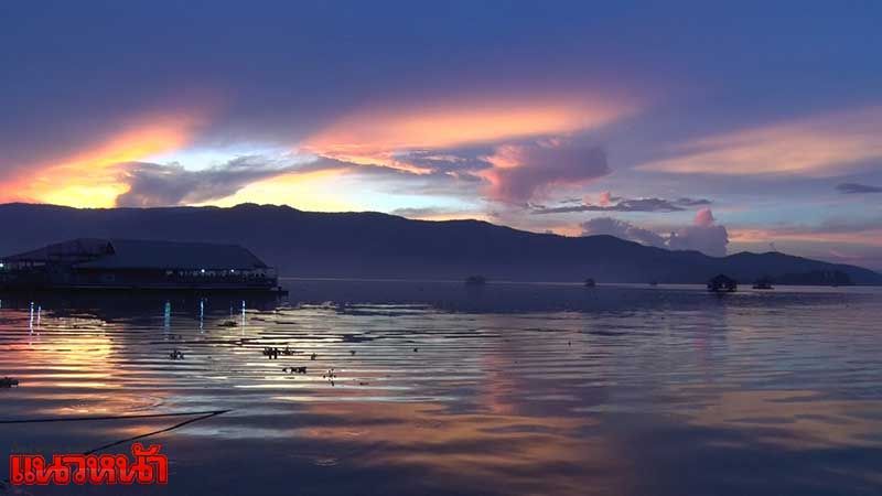 21 พ.ย.60 นักท่องเที่ยวแห่ชมแสงสีทองสาดส่องท้องฟ้าของพระอาทิตย์ตกดินที่ทะเลสาบดอยเต่า ท่ามกลางอากาศที่กำลังเย็นสบาย ขณะที่ผู้ประกอบการร้านอาหารบนเรือนแพ ช่วงฤดูหนาวปีนี้นับว่าโชคดีที่ปริมาณน้ำในทะเลสาบดอยเต่าเพิ่มขึ้นสูงในรอบหลายปี ทำให้บรรยากาศการท่องเที่ยวเป็นไปด้วยความคึกคัก โดยเฉพาะช่วงตอนเย็นอากาศกำลังเย็นสบาย