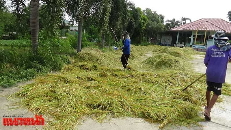 ด้านนายธงชัย ธรรมเนียมใหม่ อดีตกำนันตำบลตลาดใหม่ กล่าวว่า หลังได้เกิดอุทกภัยน้ำท่วมในจังหวัดอ่างทอง มีพี่น้องชาวนาในบริเวณตำบลตลาดใหม่ ได้รับความเดือดร้อนน้ำท่วมนาข้าวเสียหาย ด้านนาข้าวของนายสำเริง มีอยู่จำนวน 8 ไร่ ข้าวในนาอายุอยู่ระหว่างเก็บเกี่ยวผลผลิต แต่เนื่องจากน้ำที่ท่วมขังยังลดลง จะใช้รถเก็บเกี่ยวคงไม่ได้ หากจ้างแรงงานคนลงไปเกี่ยวนั้นไม่คุมทุนแน่นอน