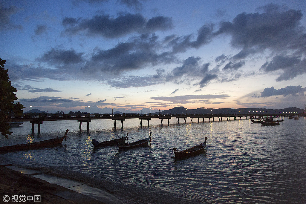 The sun rises over Chalong Pier, in Phuket, Thailand, on July 8, 2018. [Photo/VCG]