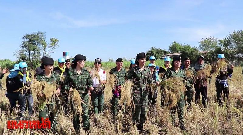 ทหารต้องคืนความสุขให้กับชาวนาที่มาร่วมงาน โดยก่อนการลงแขกเกี่ยวข้าวก็มีการแสดงของทหาร เป็นการโชว์สเต็ปแดนซ์เพลง “ตะ ตุง ตวง” ที่กำลังฮิตติดลมบนอยู่ตอนนี้ ซึ่งเหล่าทหารมีการเต้นกลางทุ่งนา อีกมือถือรวงข้าว อีกมือถือเคียวเกี่ยวข้าว พอโชว์สเต็ปเสร็จแล้วก็ไม่ลืมที่จะหันมาช่วยช่าวบ้านเกี่ยวข้าว