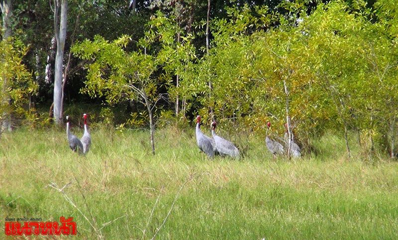 ชมฝูงนกกระเรียนไทยหายากใกล้สูญพันธุ์วอนปชช.ร่วมอนุรักษ์