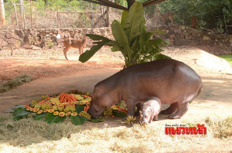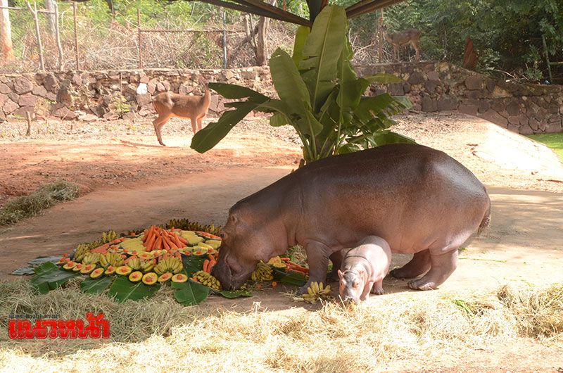 นายเทวินทร์ฯ เปิดเผยว่า สวนสัตว์นครราชสีมาต้อนรับสมาชิกใหม่ เป็นลูกฮิปโปโปเตมัสสุดน่ารัก ยังไม่ทราบเพศ เกิดเมื่อวันที่ 16 ตุลาคม 2560 เกิดจากพ่อธง และแม่นำชัย น้ำหนักแรกเกิดประมาณ 4-5 กิโลกรัม ซึ่งลูกฮิปโปโปเตมัส มีสุขภาพแข็งแรง อ้วนท้วนสมบูรณ์ และในช่วงนี้แม่ฮิปโปโปเตมัสจะดูแลลูกอย่างใกล้ชิดไม่ยอมห่าง และเพื่อเป็นการมอบความสุขให้กับเด็กๆและนักท่องเที่ยว สวนสัตว์นครราชสีมาจัดเก๋ไก๋ไม่เหมือนใคร ต้อนรับสมาชิกใหม่ลูกฮิปโปโปเตมัส กับบุฟเฟ่ต์ผลไม้ขนาดใหญ่ ประกอบด้วย กล้วย , ข้าวโพด , ผักบุ้ง , แครอด และฟักทอง เพื่อฉลองให้กับแม่นำชัยกับลูกน้อย พร้อมทั้งชมความน่ารักและความผูกพันแม่ลูกฮิปโปโปเตมัสด้วยการลงบ่อเล่นน้ำอย่างมีความสุข ภายในส่วนแสดงฮิปโปโปเตมัส โดยขณะนี้สวนสัตว์นครราชสีมามีฮิปโปโปเตมัสอยู่ในความดูแลรวมทั้งหมดจำนวน 4 ตัว
