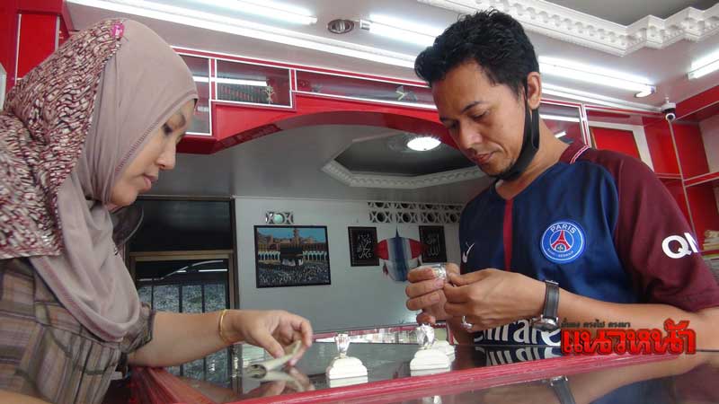 เมื่ออยู่บนเรียวนิ้วของชายมลายูมุสลิม จะทอประกายแวววาว ตัดกับลวดลายแปลกตาบนตัวเรือนสีเงินบนนิ้วนางข้างซ้าย มันกลมกลืนเข้ากันอย่างเหมาะเจาะกับเสื้อเชิ้ตลาย “บาติก” ทรงสากลนิยม และ “หมวกซอเก๊าะ” หรือแม้กระทั่งชุดโต๊บยาวของผู้นำศาสนา โดยชายมลายูมุสลิมชื่นชอบมาก