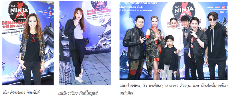 ด้านเซเลบฯ แฟนพันธุ์แท้นินจาอิงะเอ็ม-ศิรประภา จีระพันธ์ บอกว่า ทุกคนคงเคยเห็นนินจาในภาพยนตร์ แต่พอคิดว่าวันนี้เราจะได้มาลองเดินผ่านประตูกล ช่องลับกับดักต่างๆ ในบ้านนินจาของแท้ คิดว่าน่าจะเป็นอีกหนึ่งประสบการณ์ที่ทำให้คนไทยได้สนุกสนานร่วมกัน ส่วนตัวชอบไปญี่ปุ่นอยู่แล้ว คุณพ่อเองท่านก็ชอบ พอเห็นว่าทางซีพีเอ็นและบีอีซี-เทโร นำการผจญภัยในหมู่บ้านนินจามาไว้ที่เมืองไทย รู้สึกว่าน่าไปมากๆ และคุณพ่อท่านเป็นคนสนุกสนานอารมณ์ดี ท่านคงชอบใจที่จะได้สวมชุดนินจาถ่ายรูปด้วยกันทั้งครอบครัว และยิ่งการพาเด็กๆ มาด้วยจะเป็นการสร้างความสัมพันธ์และสร้างประสบการณ์ที่เป็นความทรงจำที่ดีให้กับเขา