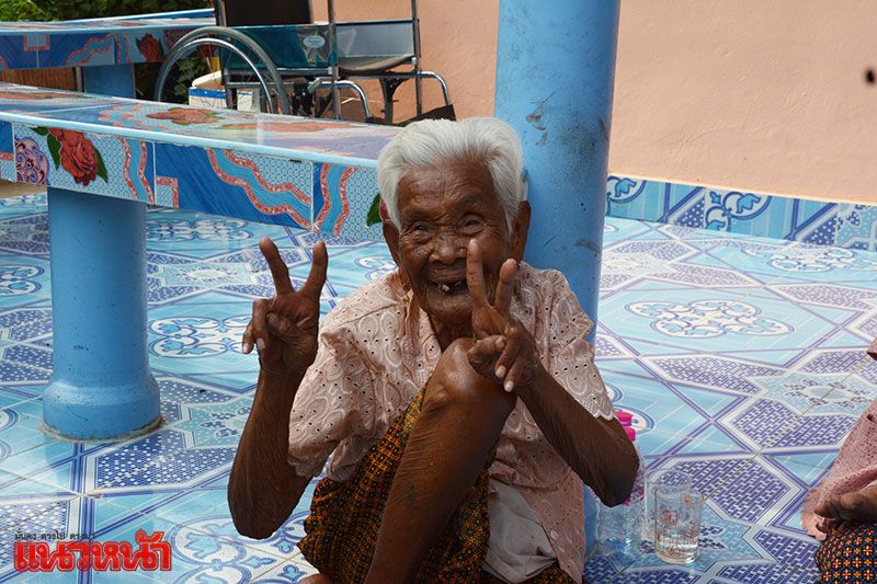 ด้าน คุณยายจันทร์ ถึงอายุ 103 ปี แต่สุขภาพทั่วไปยังดี แต่เดินเหินลำบากและหูตึง เวลาใครพูดอะไรกับคุณยาย ต้องตะโกนและพูดใกล้ๆ ได้บอกว่า ดีใจมากที่ได้รับบัตรประชาชน เพราะติดต่ออะไรไม่ได้เลย และยังได้รับเบี้ยยังชีพในช่วงบั้นปลายชีวิต และคุณยายจันทร์ ยังให้พรปีใหม่ ให้กับทุกคนที่ไปที่บ้านในวันนี้ว่า ปีใหม่นี้ขอให้ทุกคนมั่งมีศรีสุข อยู่เลี้ยงลูกเลี้ยงเต้าจนแก่จนเฒ่า ถือไม่เท้ายอดทอง กระบองยอดเพชร สาธุ จากนั้นทุกคนก็ได้ร่วมกันปล่อยปลาลงบ่อน้ำของชุมชนเพื่อเป็นสิริมงคล