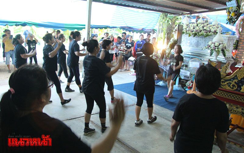 ฮือฮา เพื่อนร่วมเต้นแอโรบิคหน้างานศพของสมาชิกชมรมแอโรบิคบางไทร อ.ตะกั่วป่า เพื่อไว้อาลัยแด่ผู้ตายเป็นครั้งสุดท้าย หลังจากผู้ตายเสียชีวิตจากเหตุรถแดงไหลลงดอยลานจอด หน้าพระตำหนักภูพิงค์ทับร่าง