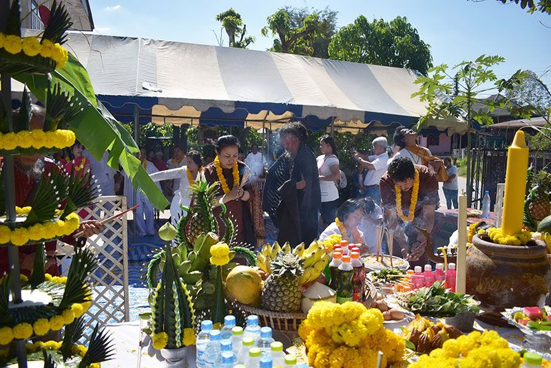 เวลาผ่านไปประมาณ 1 ชั่วโมง หลังจากพญานาคและเหล่านาคีบริวาร ที่มาจากคุ้มวังต่างๆ ได้ร่วมร่ายรำบวงสรวงปู่พญานาคศรีสุทโธแล้ว เหตุการณ์ก็เริ่มเข้าสู่ภาวะปกติ ชาวบ้านที่มาร่วมพิธี ต่างต่อแถวกันจุดธูปสักการะอธิษฐาน ต่อหน้ารูปพญานาคที่ประดิษฐ์ขึ้นจากใบตองอย่างสวยงามบนแท่นพิธี พร้อมเข้ากราบกรานขอพรปีใหม่ รับการตรวจโรคภัย โชคชะตาราศี และรับน้ำมนต์ทิพย์กับปู่พญานาคศรีสุทโธในร่างของนายภานุพงษ์ อย่างเนืองแน่น โดยบรรยากาศเป็นไปด้วยความคึกคักตลอดวัน