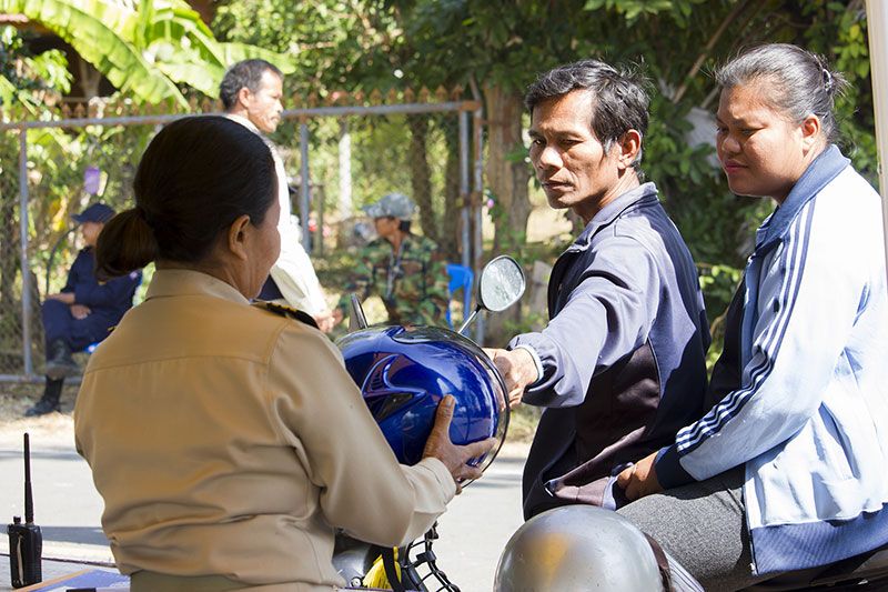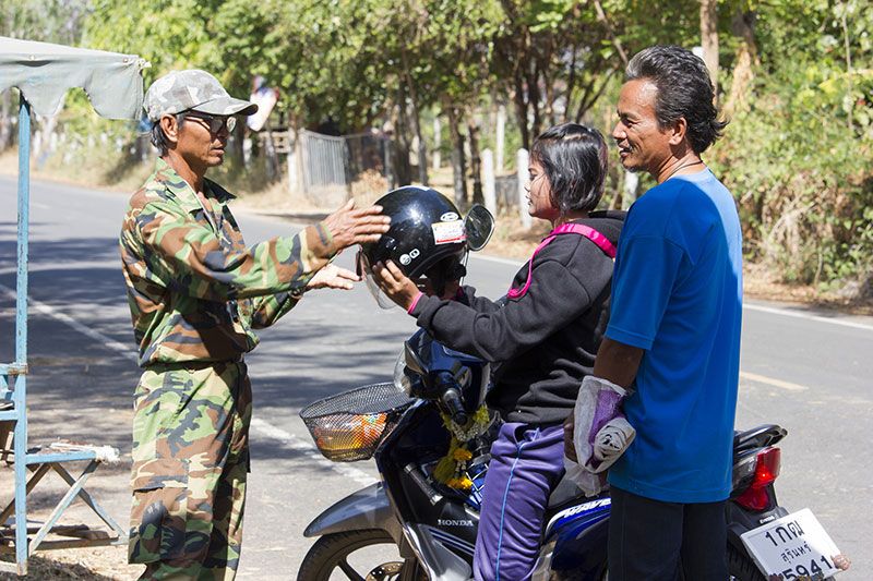 โดยจัดหาหมวกกันน็อกมาไว้บริการประชาชนคนในชุมชนและหมู่บ้านใกล้เคียง หากประชาชนที่ขับขี่ผ่านด่านชุมชนบ้านโนนเปือย ต.โพนโก ไม่มีหมวกกันน็อก ก็จะให้ยืมใส่เพื่อขับขี่ออกนอกหมู่บ้าน พร้อมแนะนำให้ตระหนักถึงความปลอดภัยและปฏิบัติตามกฎหมายจราจร เพื่อเป็นการลดความรุนแรงขณะเกิดอุบัติเหตุบนท้องถนน
