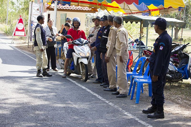 3 ม.ค.61 ผู้สื่อข่าวรายงานว่า จากนโยบายของ ศปถ. อำเภอสนม โดยนายคณัสชนม์ ศรีเจริญ นายอำเภอสนม ได้มอบหมายให้ กำนัน ผู้ใหญ่บ้าน และผู้นำชุมชน แสวงหาหามาตรการ การดูแลความรักษาปลอดภัยทางถนน ในช่วงเทศกาลปีใหม่ และ 7 วันอันตราย โดยเน้นเรื่อง เมาไม่ขับ สวมหมวกกันน็อก คาดเข็มขัดนิรภัย โดยทุกหมู่บ้าน ตำบล ได้ตั้งด่านชุมชน ด่านครอบครัวขึ้นมา ซึ่ง นายบุญยิ่ง บุญบำรุง กำนันตำบลโพนโก อำเภอสนม จังหวัดสุรินทร์ ร่วมกับแกนนำชุมชน และ ชรบ. อพปร.รวมทั้งกำนันผู้ใหญ่บ้าน จึงได้คิดไอเดียเจ๋งๆขึ้นมา