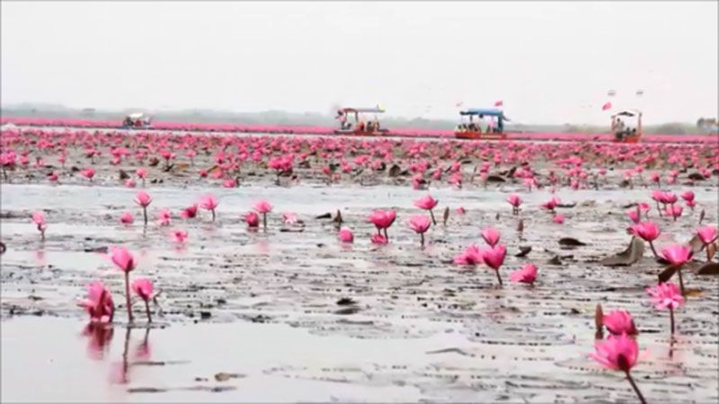 26 ธ.ค.60 ปีใหม่ที่จะถึงนี้ถ้าใครยังไม่รู้จะไปไหน ขอแนะนำสถานที่ล่องเรือชมบัวแดงชมความงามของบัวแดงในลุ่มหนองหาน-กุมภวาปีกว่าหมื่นไร่ กำลังเบ่งบานรอรับนักท่องเที่ยวมชมความสวยงามกันแล้ว
