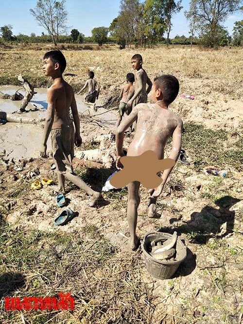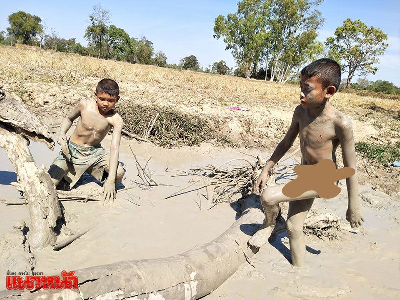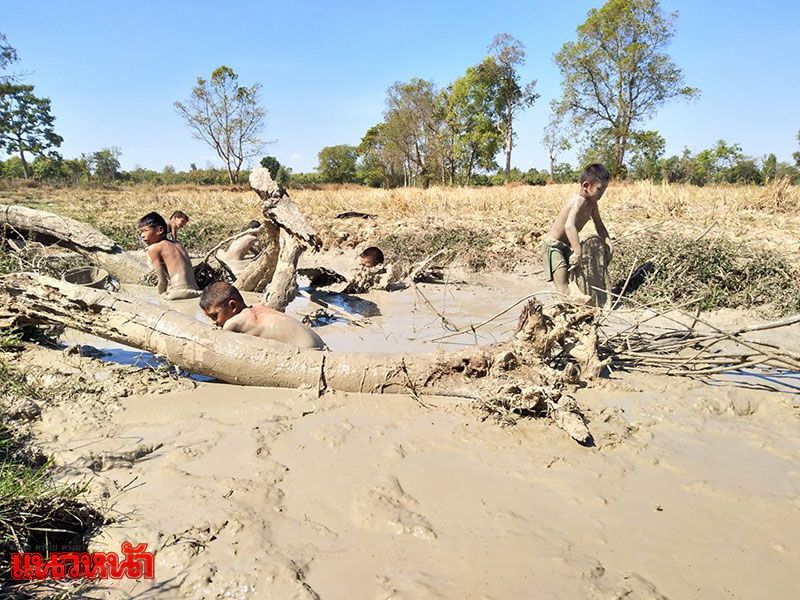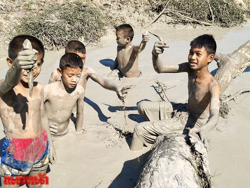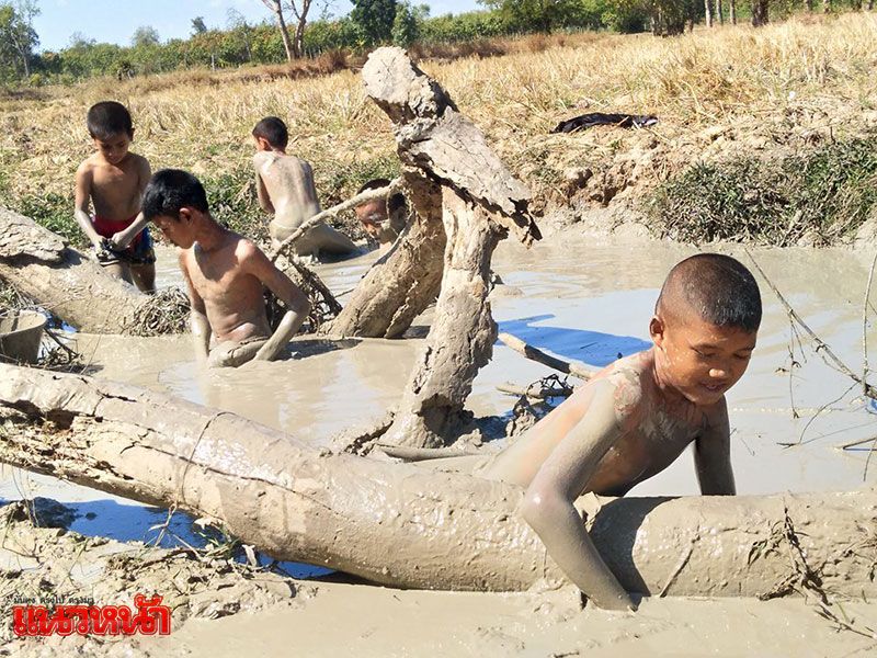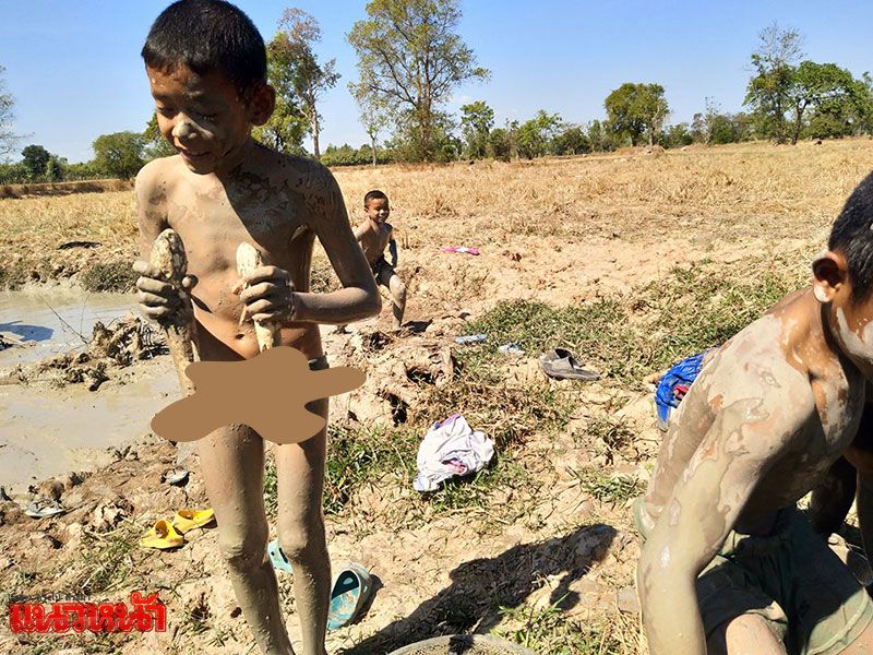 ม่วนคักแท้เนาะ!! เด็กๆลุยโคลนจับปลาช่อน ใช้วันหยุดสนุก-มีประโยชน์