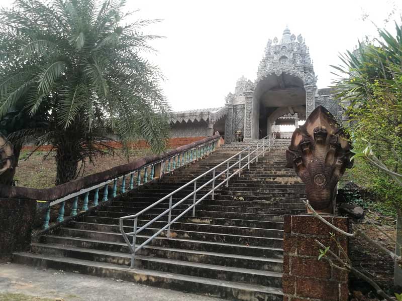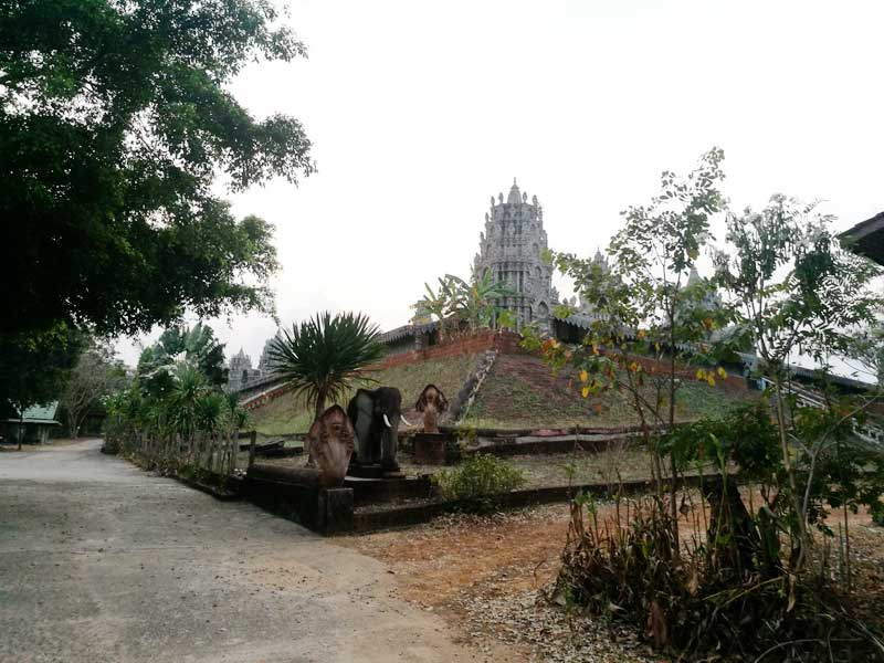 โดยมีพระปรางค์กุญชรมณีศรีไตรยอดเพชรที่ตั้งอยู่บนเขาเตี้ยๆ ใกล้เขตแดนไทย-กัมพูชา มีลักษณะองค์ปรางค์ 3 ยอดอยู่ตรงกลางและมีปรางค์บริวารโดยรอบทั้ง 8 ทิศ ตั้งอยู่บนยอดเขาเตี้ยๆ ภายในรูปสี่เหลี่ยมกำแพงแก้ว ที่เป็นศิลปะสมัยใหม่ผสมผสานแนวคิดพระธาตุพนมกับนครวัด โดยหลวงพ่อพวน วรมังคลโล เกจิอาจารย์ชื่อดังแห่งอีสานใต้ท่านเป็นผู้ออกแบบเอง ปัจจุบันท่านได้ละสังขารแล้ว