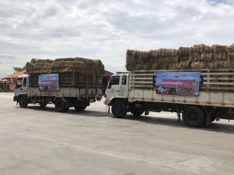 และ 3.จัดตั้งคลังเสบียงสัตว์ประจำตำบล โดยการทำงานบูรณาการร่วมกันระหว่าง กรมปศุสัตว์ องค์การปกครองส่วนท้องถิ่น และภาคีเครือข่ายเกษตรกรผู้เลี้ยงสัตว์ซึ่งมีการปล่อยขบวนเสบียงสัตว์เพื่อสำรองในคลังเสบียงสัตว์ประจำตำบล ในพื้นที่เขตภาคเหนือตอนล่าง จำนวน 6 แห่ง และหลังจากนี้กรมปศุสัตว์จะได้ดำเนินการส่งมอบเสบียงสัตว์ให้กับคลังเสบียงสัตว์ทั่วประเทศ อย่างไรก็ตามในกรณีที่เกิดภาวะวิกฤตฉุกเฉินเกษตรกรผู้เลี้ยงสัตว์สามารถติดต่อขอรับความช่วยเหลือด้านเสบียงสัตว์ผ่านปศุสัตว์อำเภอและปศุสัตว์จังหวัดในพื้นที่รับผิดชอบได้จากศูนย์วิจัยและพัฒนาอาหารสัตว์ใกล้บ้าน ทั้ง 32 แห่งทั่วประเทศ ซึ่งมีการให้บริการในรูปของหญ้าสด หญ้าหมักและหญ้าแห้ง