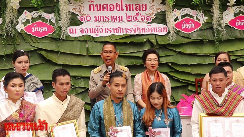 10 ม.ค.61 เวลา 6.30 น. นายชัยวัฒน์ ชื่นโกสุมผู้ว่าราชการจังหวัดเลย เปิดจวนผู้ว่าแต่งงานคู่รักบ่าวสาวพร้อมกัน 16คู่ ภายในจวนผู้ว่าฯ โดยได้จัดงานแต่งแบบเรียบง่ายตามวิถีวัฒธรรมของไทเลยแบบดั้งเดิมเป็นการสืบสานประเพณีดีงามที่มีมาแต่โบราณโดยไม่เสียค่าใช้จ่ายทุกอย่างฟรี คู่บ่าวสาวต่างประทับใจมีผู้ร่วมงานกว่า 1,000 คนโดยพิธีเริ่มขึ้นในช่วงเช้ามืด บ่าวสาวทั้ง 16 คู่ ทั้ง 14 อำเภอโดยมีนายอำเภอแต่ละอำเภอนำมา พร้อมกันที่หน้าจวนผู้ว่าราชการร่วมกันใส่บาตรพระสงฆ์