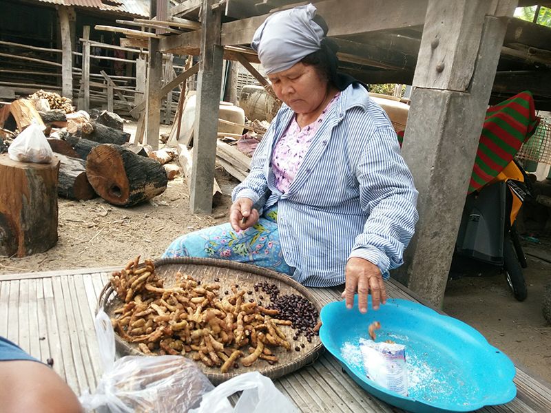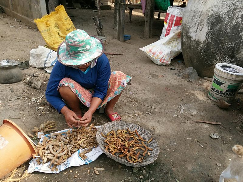 นางลมูล ไกรจันทร์ เล่าว่า จะออกสอยมะขาม เอาผลที่สุกเต็มที่เท่านั้น เมื่อสอยมาได้แล้วก็จะเอามานั่งแกะเปลือกออก โดยแยกแกะเมล็ดมะขามออก ให้เหลือแต่เนื้อมะขาม นำมาทำเป็นก้อนเท่ากำปั้น ขายในราคาก้อนละ 20 บาท เมื่อได้มากพอก็จะนำขายที่ตลาดสด อ.สตึก จ.บุรีรัมย์ ในกิโลกรัมละ 100 บาท