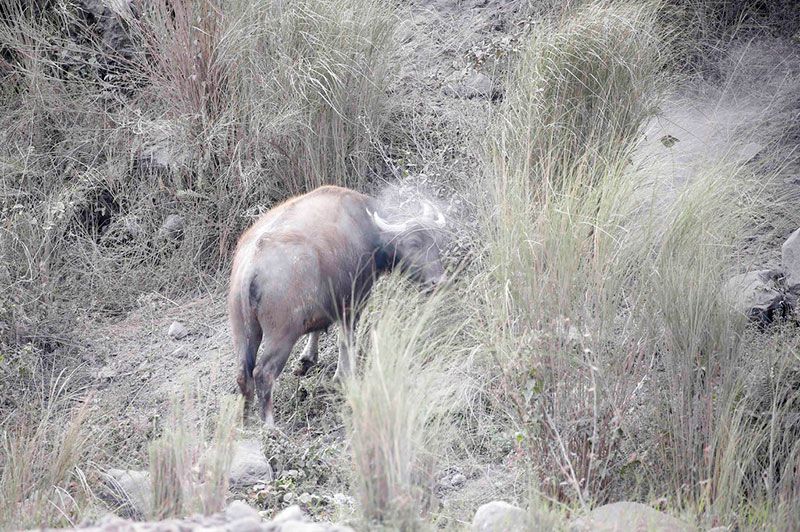 ทั้งนี้ สื่อต่างประเทศ ได้เผยภาพหลังภูเขาไฟระเบิด ซึ่งมีเถ้าภูเขาปกคลุมไปทั่วบริเวณกว้าง ประชาชน และสัตว์เลี้ยงต่างๆ เช่น กระบือ หรือ ควาย ได้รับความเดือดร้อนอย่างหนัก จากการที่ต้องสูดดมอากาศที่เต็มไปด้วยฝุ่นละออง