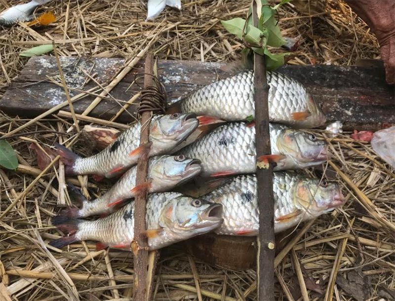 เมื่อหาปลาได้มามากพอ เหล่าบรรดาเชฟมือโปรบ้านทุ่ง ก็จะลงมือรังสรรค์เมนูสุดแซบ ทั้ง ลาบ ต้ม ย่าง ซึ่งอุปกรณ์และเครื่องปรุงก็ไม่ต้องหายาก สามารถหาได้ในทุ่งนาแทบทั้งสิ้น ทั้ง มดแดง ผักอีออม ผักติ้ว ผักสะเดา สามารถหาได้อย่างง่ายดาย ส่วนปลาที่เหลืออีกมากก็จะเอาไปให้แม่บ้านประกอบอาหารเลี้ยงครอบครัว มื้อต่างๆ และขายให้กับเพื่อนบ้าน มีรายได้หลังฤดูกาลทำนา วันละกว่า 300 บาทเลยทีเดียว ซึ่งใช้เวลาไม่ถึงหนึ่งชั่วโมง ก็จะได้เมนูอาหารสุดแซบ ที่ไม่ต้องเสียเงินซื้อ แต่รสชาติแซบสนั่นทุ่งทีเดียว