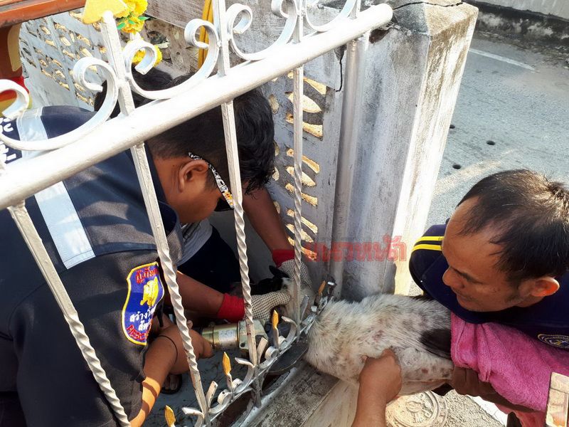วันนี้ 9 กุมภาพันธ์ เจ้าหน้าที่หน่วยกู้ภัยมูลนิธิสว่างโรจนธรรมสถาน อ.สัตหีบ จ.ชลบุรี ได้รับแจ้งขอความช่วยเหลือมีสุนัขหัวติดรั้วเหล็ก หน้าบ้านเลขที่ 21/2 ม.4 ต.สัตหีบ อ.สัตหีบ จ.ชลบุรี จึงรุดไปตรวจสอบพร้อมอุปกณ์ตัดถ่าง