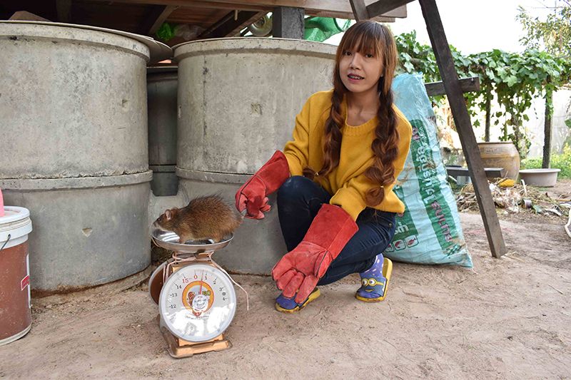 “หนูนาที่เลี้ยงในฟาร์ม จะจัดการระบบอย่างดี โดยเฉพาะความสะอาดหนูทุกตัวที่นี่จะถูกจับอาบน้ำด้วยแชมพูที่มีกลิ่นหอม นอกจากความสะอาดแล้วยังพบว่าลดการกัดกันของหนูอย่างได้ผล สามารถเถียงเลยว่าหนูนาที่นี่สะอาดแน่นอน ขณะที่การให้อาหารจะมีหัวอาหารหมูเล็ก เป็นส่วนผสมเพียงเล็กน้อย มันสำปะหลังเป็นอาหารหลัก รวมถึงข้าวเปลือก หญ้าและพืชต่างๆที่หาได้ตามท้องถิ่น จากการเลี้ยงหนูนามาระยะหนึ่งพบว่าหนูนานอกจากจะเลี้ยงง่าย เติบโตไว ยังพบว่าอัตราการตายมีน้อยมาก รวมถึงกลิ่นมูลสัตว์มีเพียงเล็กน้อยเท่านั้น ตอนนี้ได้ใช้เวลาทั้งหมดอยู่ในฟาร์มหนูนาตลอดทั้งวัน จากเดิมที่เลี้ยงในท่อประมาณ 10 ท่อใต้ยุ้งฉางของญาติและบ่อขนาดใหญ่ ตอนนี้ทางครอบครัวและแฟน ได้เริ่มขยายฟาร์มเพื่อขยายพันธุ์หนูนาในฟาร์มให้เพียงพอต่อความต้องการของลูกค้า เป็นธุรกิจครอบครัวที่ค่อยๆทำค่อยๆสร้าง ตอนนี้ทางฟาร์มมียอดจำหน่ายพ่อพันธุ์แม่พันธุ์ตั้งแต่เดือนสิงหาคมจนถึงปัจจุบันเกือบ 100 คู่แล้ว ก็คิดว่าจะพัฒนาไปเรื่อยๆ” นางสาวอารญา กล่าว