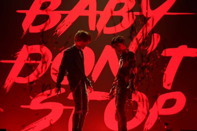 และแล้วก็เดินทางมาถึงช่วงไฮไลท์สุดท้ายของงาน กับหลากหลายเวทีการแสดงที่ขึ้นโชว์ในประเทศไทยเป็นครั้งแรก พร้อมจัดเต็มทั้งแสง สี เสียง เริ่มจากโซโล่ของ ‘เตนล์’ อย่าง ‘New Heroes’ เพลงแนวป๊อป EDM ที่โชว์ให้เห็นถึงการเต้นอันเป็นเอกลักษณ์ มีเสน่ห์เชิงศิลปะ รวมถึงเสียงร้องที่เติบโตมากยิ่งขึ้นของหนุ่มไทยคนนี้ ต่อด้วยโซโล่ของ ‘แทยง’ กับเพลงแนว EDM อย่าง ‘AROUND’ ที่เจ้าตัวได้เซอร์ไพร์สเปิดตัวออกมาโชว์สกิลการแร็ปแบบเท่ ๆ ท่ามกลางผู้ชม ก่อนเดินขึ้นเวทีมาระเบิดความมันส์จนต้องขยับตัวเต้นตามกันทั้งฮอลล์ และเพลงสุดท้ายก็คือ เพลงที่ทุกคนต่างตั้งตารอคอยอย่าง “Baby Don’t Stop (Special Thai Version)” ที่แค่เริ่มจังหวะเพลงขึ้นมาแฟน ๆ ถึงกับกรี๊ดกันสนั่น โดยในเพลงนี้ ทั้ง ‘แทยง’ และ ‘เตนล์’ ต่างก็ตั้งใจแสดงกันอย่างเต็มที่เพื่อโชว์ให้เห็นถึงเสน่ห์ และเคมีที่เข้ากันได้อย่างสมบูรณ์แบบดึงดูดทุกความสนใจให้มาอยู่ที่พวกเขาเท่านั้น ก่อนจะปิดท้ายงานด้วยคำขอบคุณจากทั้ง 2 หนุ่ม ‘แทยง’ และ ‘เตนล์’ ที่ได้มาร่วมเป็นส่วนหนึ่งของแฟนมีตติ้งในครั้งนี้ พร้อมสร้างความสุข และความทรงจำดี ๆ ด้วยกันตลอดทั้งงาน