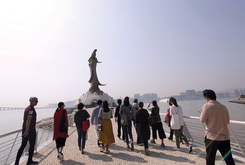 และอีกหนึ่งไฮไลท์ของทริปนี้ความพิเศษอยู่ที่คณะได้เข้าร่วมพิธี “ขอเงินเจ้าแม่กวนอิม” ซึ่งหนึ่งปีมีครั้งเดียว ที่ “วัดเจ้าแม่กวนอิม” ถือได้ว่าเป็นวัดที่ใหญ่และเก่าแก่ที่สุดของมาเก๊า ความพิเศษขององค์เจ้าแม่กวนอิมที่วัดแห่งนี้คือจะสวมเครื่องทรงอยู่ในชุดเจ้าสาวของจีนที่ได้รับการตัดเย็บด้วยผ้าไหมอย่างดี และมีการปรับเปลี่ยนชุดที่สวมใส่อยู่ใหม่ในทุกปี โดยบริเวณด้านข้างจะรายล้อมไปด้วยรูปหล่อของเหล่า 18 อรหันต์ ซึ่งใครที่กำลังจะทำธุรกิจและอยากให้ธุรกิจประสบความสำเร็จ ก็ต้องขอพรแก่องค์เจ้าแม่กวนอิม เพื่อหยิบยืมเงินนำไปทำทุน ซึ่งภายในวัดจะมีจุดจำหน่ายเครื่องเซ่นไหว้อยู่ 4 แบบด้วยกันทั้งชุดเล็กชุดใหญ่ตามแต่กำลังศรัทธา ประกอบไปด้วยธูปเทียน เครื่องไหว้และปึกเงินสำหรับการหยิบยืมถ้าอยากจะให้หน้าที่การงานหรือธุรกิจเจริญรุ่งเรืองก็อย่าลืมมาเช็คอินกันที่วัดนี้ หลังจากอิ่มบุญกันที่วัดเจ้าแม่กวนอิมแล้ว มาต่อกันที่ “วัดลินฟง” วัดแห่งนี้มีด้านหน้าวัดที่งดงามที่ทำจากดินเหนียวที่แกะสลักอย่างประณีตแบบนูนต่ำ ซึ่งเป็นภาพวาดในประวัติศาสตร์และในตำนานมีสิงโตหินคอยปกป้องตรงทางเข้า ห้องโถงมีรูปปั้นเจ้าแม่ทับทิมบนโต๊ะบูชาขนาบข้างด้วยนายพลที่เป็นองครักษ์ เลยไปเป็นลานที่ตกแต่งด้วยภาพมังกรที่ม้วนตัวบนผนัง บ่อน้ำที่เต็มไปด้วยดอกบัวและเตาถ่านสัมฤทธิ์ที่สวยงาม ห้องโถงหลักเป็นห้องโถงสำหรับรูปปั้นเจ้าแม่กวนอิมบนโต๊ะบูชาที่ตกแต่งอย่างประณีต วัดลินฟงเป็นวัดที่มีชื่อเสียงในอดีตนานหลายศตวรรษที่ชาวจีนกลางจากมณฑลกวางตุ้งพักอาศัยเมื่อเดินทางมามาเก๊า เดินทางไปต่อที่ “วัดอาม่า” ถือเป็นวัดที่มีความสำคัญมากที่สุดวัดหนึ่งและเป็นที่มาของชื่อเมืองมาเก๊าแห่งนี้เลยก็ว่าได้ เพราะสร้างขึ้นเพื่ออุทิศให้แก่อาม่า หรือที่รู้จักกันในอีกชื่อว่า “เจ้าแม่ทับทิม” ที่ได้เดินทางมาถึงยังผืนแผ่นดินมาเก๊า ณ บริเวณหน้าวัดแห่งนี้ที่แต่เดิมนั้นตั้งอยู่ริมฝั่งทะเล แต่ในปัจจุบันได้มีการถมที่เพิ่มขึ้นมา จึงทำให้ตัววัดนั้นร่นเข้ามาอยู่ในส่วนแผ่นดินแทน ภายในศาลานั้นเป็นที่ตั้งขององค์เจ้าแม่ทับทิม หรือก็คือองค์เทพธิดาแห่งท้องทะเล ผู้ปกปักรักษาพื้นน้ำและมหาสมุทร ผู้ที่ทำธุรกิจการค้าด้านการขนส่ง ควรมาสักการะเพื่อขอให้การเดินทางราบรื่น ปลอดภัย ไม่มีอุปสรรคใดๆ ขวาง และมาเช็คอินที่สุดท้ายของทริปนี้ “ศูนย์ส่งเสริมศาสนาเจ้าแม่กวนอิม” ตั้งอยู่ที่ท่าเรือด้านนอก ยื่นออกไปทางทะเลเป็นระยะทาง 60 เม