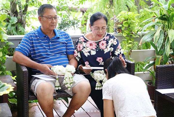 ‘จุ๋ย’ยิ้มร่าฉลองวันเกิดอายุ 35 ปีควง’พุฒ’กราบเท้าพ่อแม่ก่อนวิวาห์