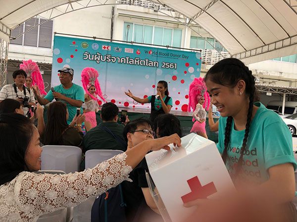 ป๊อปปี้ ปรัชญาลักษณ์ โชติวุฑฒินันท์ และปะแป้ง พลอยชมพู ลอมเศรษฐี2 ศิลปินไมค์ทองคำ ค่ายยุ้งข้าวเรคคอร์ด ร่วมร้องเพลงสร้างความสุขให้กับผู้ที่มาร่วมงาน “วันผู้บริจาคโลหิตโลก 2561” (World Blood Donor Day 2018) ที่จัดขึ้นเมื่อวันอาทิตย์ที่ 10 มิ.ย.ที่ผ่านมา ณ ศูนย์บริการโลหิตแห่งชาติ สภากาชาดไทย ถ.อังรีดูนังต์งานวันผู้บริจาคโลหิตโลกนี้จัดขึ้น เพื่อขอบคุณผู้บริจาคโลหิต ส่งเสริมให้คนในสังคมมองเห็นคุณค่าของการให้ด้วยการบริจาคโลหิต และให้การบริจาคโลหิตเป็นความรับผิดชอบต่อสังคมร่วมกัน เพื่อให้มีโลหิตทีมีคุณภาพ ปลอดภัย และเพียงพอกับความต้องการของผู้ป่วยทั่วประเทศ ในปีนี้เป็นปีที่ 15 แล้ว โดยมีสโลแกนว่า“Be there for someone else. Give blood. Share life (ทุกชีวิตมีความหมาย ให้โลหิต ให้ชีวิต)