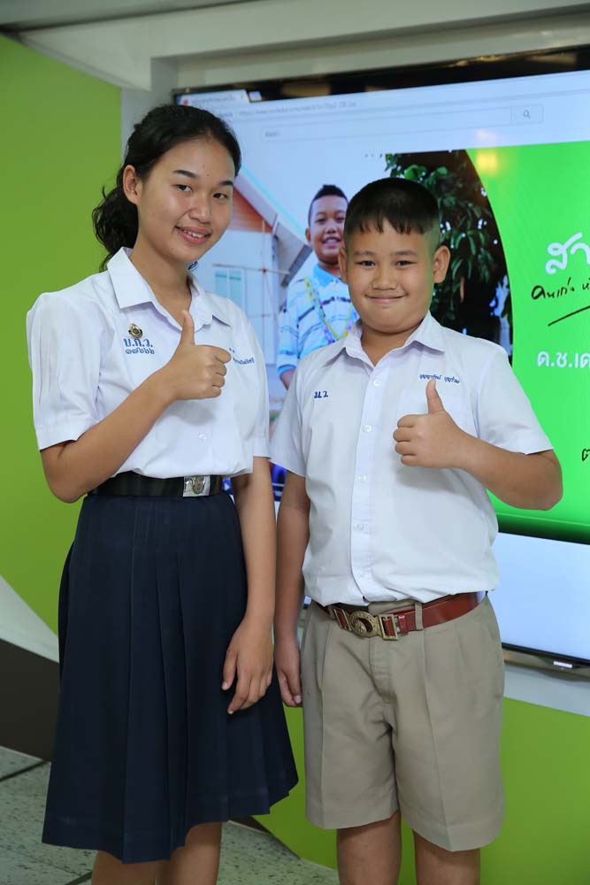 ส่วน น้องสอง-ด.ช.บุญญารัตน์ บุญร่วม วัย 10 ปี กำลังเรียนอยู่ชั้นประถมศึกษาปีที่ 5 รร.บ้านคลองมหาสวัสดิ์จ.นครปฐม บอกว่า “ความฝันของผม คืออยากเรียนต่อ และโตขึ้นอยากเป็นทหารครับ โครงการนี้ช่วยให้ผมได้ทุนเรียนหนังสือ และช่วยให้ผมรู้จักใช้สื่อการเรียนผ่านออนไลน์ ได้เรียนภาษาอังกฤษผ่านยูทูบด้วยครับ”