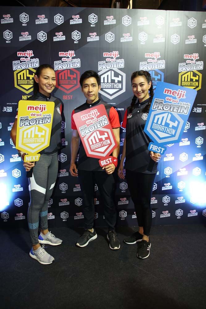 แพนเค้ก-โย-ณัฐ ต่างก็ผ่านสนามการแข่งขันวิ่งมาราธอนมาแล้วทั้งนั้น ล่าสุด ซีพี-เมจิ ผู้ผลิตและจำหน่ายผลิตภัณฑ์นมพาสเจอร์ไรซ์อันดับ 1 ในประเทศไทย ชวนทั้ง 3 คน เข้าร่วมอบรมฝึกซ้อมการวิ่ง เพื่อก้าวข้ามขีดจำกัดและสร้างสถิติการวิ่งที่ดีที่สุด ภายใต้การดูแลโดยโค้ชมืออาชีพระดับโลก ด้วยรูปแบบการฝึกซ้อมอย่างครบวงจรที่สุดครั้งแรกในประเทศไทย ในโครงการ “เมจิ ไฮโปรตีนมาย มาราธอน” ซึ่งจัดงานแถลงข่าวเปิดตัวโครงการไปเมื่อวันศุกร์ที่ 8 มิถุนายนที่ผ่านมาณ ลานเอเทรียม 1 สยามเซ็นเตอร์ (สมัครเข้าร่วมโครงการได้ทาง Facebook Page Meiji High Protein Fan Page, Facebook Thai.Run Fan Page และ www.thai.run)