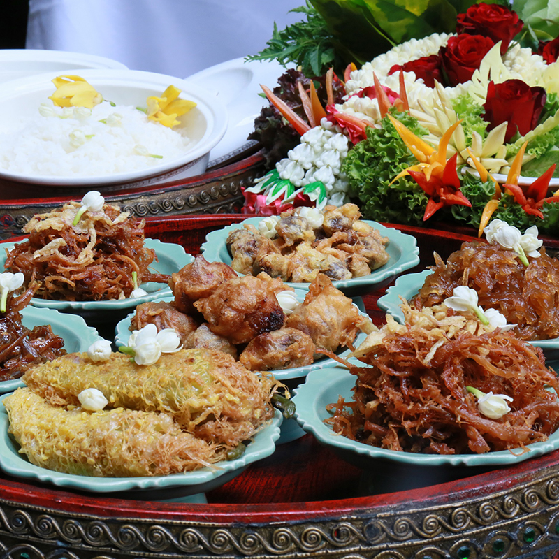 อาหารไทยชุดบุพเพสันนิวาส” ชวนชิมสำรับอาหารไทย ที่มีทั้งของคาวและหวาน เริ่มด้วยเมนูเรียกน้ำย่อยอย่างหมูโสร่ง ที่กรอบนอกนุ่มในหอมเครื่องเทศ ตามมาด้วยกุ้งเผาน้ำจิ้มรสเด็ด กับกุ้งแม่น้ำตัวโตๆ เผาแค่พอสุก จิ้มน้ำจิ้มซีฟู้ด และเมนูมะม่วงน้ำปลาหวาน รสชาติเข้มข้นครบรส หวาน เค็ม เผ็ด ปิดท้ายด้วยเมนูขนมไทยโบราณ ทองหยิบ ทองหยอดฝอยทอง ในราคาชุดละ 349 บาท วันนี้-30 เม.ย. ที่ห้องอาหารนานาชาติ ทิโวลี่ คอฟฟี่ ช็อป โรงแรมเอเชีย กรุงเทพฯโทร.02-2170808 ต่อ 5291