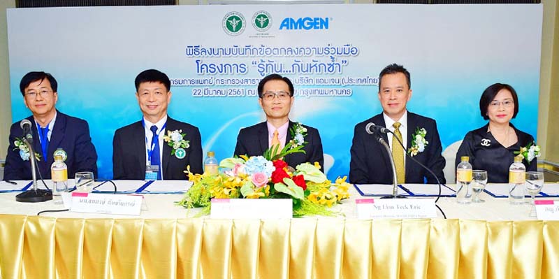 ด้วยเหตุผลดังกล่าว จึงเป็นที่มาของการลงนามบันทึกข้อตกลงความร่วมมือและความเข้าใจระหว่าง กรมการแพทย์ กระทรวงสาธารณสุข โดยโรงพยาบาลเลิดสิน และบริษัท แอมเจน (ประเทศไทย)จำกัด เพื่อรณรงค์ให้ความรู้โครงการ “รู้ทัน…กันหักซ้ำ” สนับสนุนจัดประชุมเชิงปฏิบัติการเพื่อพัฒนาบุคลากรทางการแพทย์ ในการขับเคลื่อนโครงการให้เป็นรูปธรรม เพื่อพัฒนาคุณภาพการดูแลรักษาผู้ป่วยกลุ่มนี้ให้ดียิ่งขึ้น ตามนโยบายที่กระทรวงสาธารณสุขได้ออกประกาศให้โครงการ “รู้ทัน…กันหักซ้ำ” เป็นหนึ่งในโครงการพัฒนาระบบบริการสุขภาพ 2560