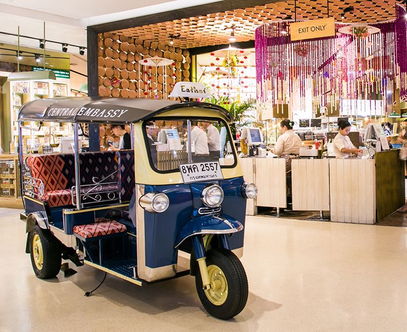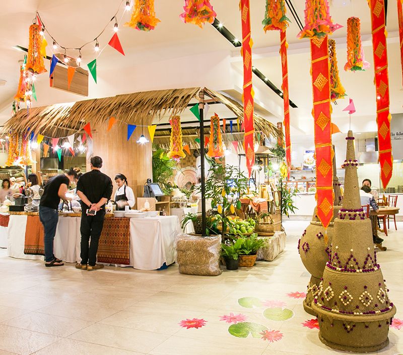 ภายในศูนย์การค้าเซ็นทรัล เอ็มบาสซี่ ชวนให้มาสัมผัสโคมลอยนับร้อยดวงที่ลอยเด่นเป็นสง่า ด้วยบรรยากาศของท้องฟ้าอันสวยงามของเชียงใหม่ และเพื่อเสริมความเป็นสิริมงคล เชิญร่วมสักการะพระพุทธรูปมาประดิษฐานให้ได้สรงน้ำ และกราบไหว้บูชาขอพรพร้อมตื่นตาตื่นใจกับนิทรรศการข้าวไทยและเครื่องประดับชั้นสูงบริเวณโซน เดอะบัลโคนีซึ่งยกขบวนเครื่องประดับทอง กระเป๋างานฝีมือมาให้ได้ชมอย่างใกล้ชิด แถมยังได้ร่วมสนุกไปกับเวิร์กช็อปจาก OTOP Heritage จากนั้นมาละลายทรัพย์กันต่อกับหลากหลายสินค้าไทยระดับคุณภาพ ณ ตลาดดอกคูณ ที่รวบรวมร้านดังสินค้าคุณภาพกว่า 20 ร้านมาไว้ในงานเดียว และเพิ่มความคิดสร้างสรรค์ที่ Open House สนุกไปกับเวิร์กช็อปสุดครีเอท ทุกสุดสัปดาห์ โดยตลอดเดือนเมษายนนี้จะพาทุกคนอิ่มเอมและภาคภูมิใจในความเป็นไทยไปกับ Thai Work shop ฯลฯ