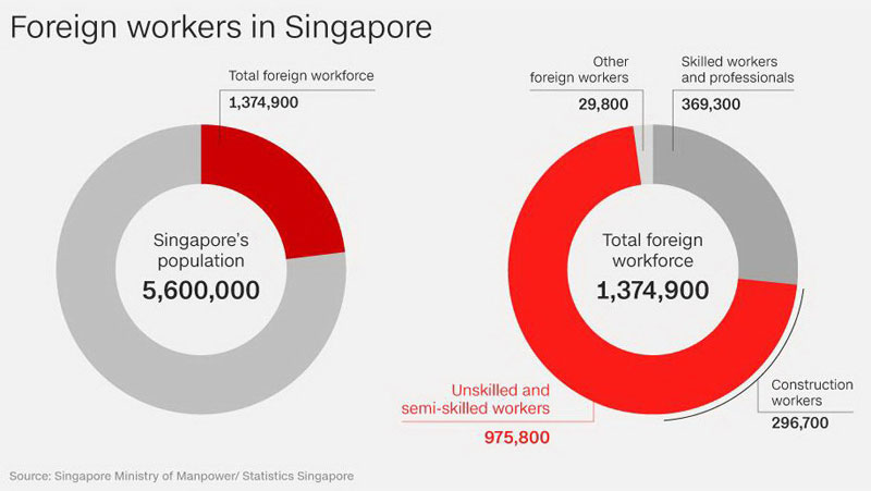 จำนวนแรงงานข้ามชาติในสิงคโปร์