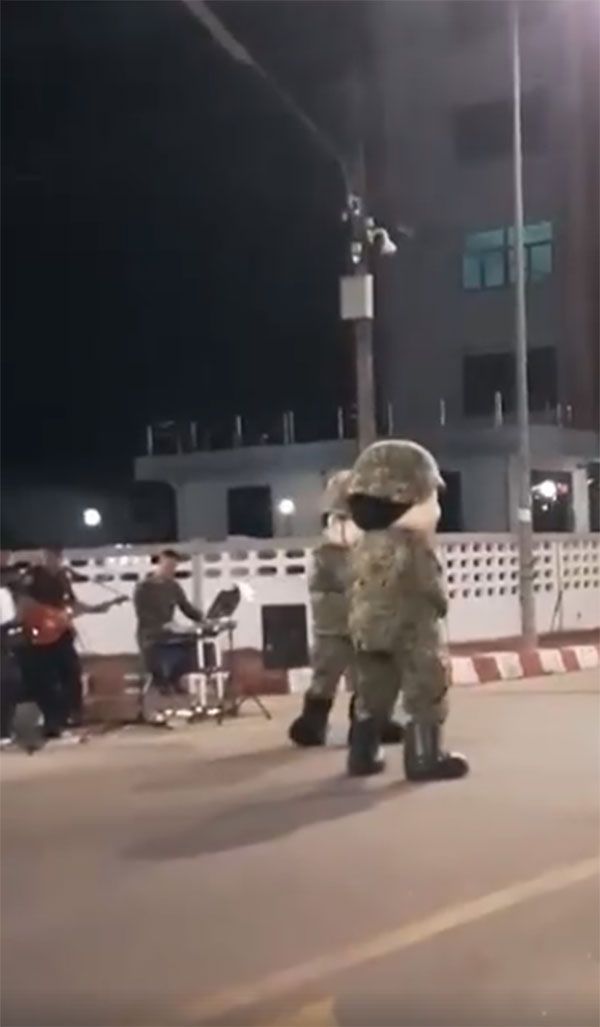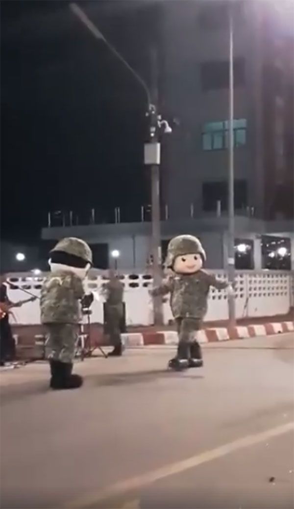19 ก.พ. 61 โลกออนไลน์ได้มีการแห่แชร์คลิปวิดีโอ จากผู้ใช้เฟซบุ๊ก”วัชรพงษ์ พรมเหมา” ซึ่งเป็น ทหารหน่วยเฉพาะกิจนาวิกโยธินกองทัพเรือ ที่ 33 นราธิวาส โดยในคลิปจะเห็นเป็นวงดนตรีmascotband และมีมาสคอต 2 ตัว เข้ามาเต้น ร้องเพลง เพื่อสร้างความ สร้างรอยยิ้ม สร้างเสียงหัวเราะห์ ให้กับ พี่น้องประชาชนในพื้นที่จังหวัดนราธิวาส
