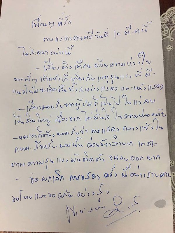 “เพื่อนๆ ที่รัก การแสดงดนตรีวันที่ 10 มีนาคมนี้ ไม่สะดวกอย่างนี้ เสียงติงเตือนด้วยความห่วงใยจากพี่ๆ เจ้าหน้าที่เกี่ยวกับเหตุรุนแรงที่มีแนวโน้มจะเกิดขึ้นทั้งระหว่างแสดง และหลังแสดง เสียงตอบรับจากผู้ชมก็เป็นไปในแง่ลบเป็นส่วนใหญ่ เนื่องจากไม่มั่นใจในความปลอดภัย ผมเองก็ต้องยอมรับว่าการแสดงกลางแจ้งในกรุงเทพมหานครสำหรับผมนั้นค่อนข้างลำบาก เพราะภาพความรุนแรงมันติดตัวจนลบออกยาก ขอยกเลิกการแสดงครั้งนี้อย่างราบคาบ ขอโทษและขออภัยอย่างสูง”