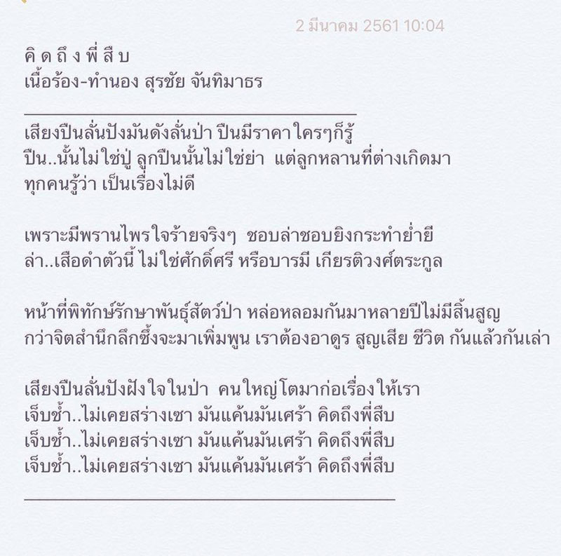 อ่านข่าวที่เกี่ยวข้อง : สัตว์นรกแห่งทุ่งใหญ่! ‘สุเมธ’ซัดแรง! แต่งเพลงจาก’เศรษฐีเข้าป่ายิงเสือดำ’โดนใจสุดๆ (ชมคลิป)