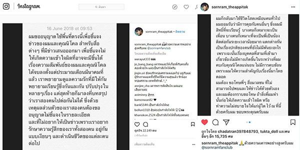เป็นกระแสร้อนแรงมาตลอดสี่วัน ที่ผ่านมานี้กับความสัมพันธ์ที่ต้องขาดสะบั้นลง ระหว่าง “นิโคล เทริโอ” กับ “หนุ่ม ศรราม” ซึ่งชาวเน็ตจับพิรุธ ตั้งแต่ “นิโคลเทริโอ” ป่วยหนักแต่ไร้เงา“หนุ่ม ศรราม” ตามมาด้วยการโพสต์IG ของหนุ่ม กับภาพทะเลสีดำ พร้อมคำคมธรรมะว่า “อยู่กลางทะเลใหญ่ อย่าไว้ใจทะเลสงบ เพราะมันอาจสยบ เพื่อหลีกทางให้พายุ – ท่านพุทธทาสภิกขุ”ท่ามกลาง ข่าวลือหนาหู ถึงความสัมพันธ์ทั้งสอง ที่สุด“หนุ่ม ศรราม” ได้ออกมาโพสต์ ผ่านIG (16 มิถุนายน 2561) ประกาศยุติความสัมพันธ์กับสาวนิโคลแล้ว พร้อมชี้แจงว่า “ผมขออนุญาตใช้พื้นที่ตรงนี้เพื่อชี้แจงข่าวของผมและคุณนิโคล สำหรับสื่อต่าง ๆ ที่มีข่าวเสนอออกมา เพื่อชี้แจงไม่ให้เกิดความเข้าใจผิดที่อาจจะมีขึ้นได้ เรื่องความสัมพันธ์ของผมกับคุณนิโคลได้จบลงตั้งแต่ประมาณเดือนมีนาคมที่แล้ว เราพยายามดูแลความรักที่มีให้กัน พยายามเรียนรู้ซึ่งกันและกัน ปรับปรุงในหลาย ๆ เรื่อง แต่สุดท้ายก็มาลงที่บทสรุปว่าเราสองคนไปต่อกันไม่ได้ ซึ่งด้วยเหตุผลของเราสองคนต้องขออนุญาตไม่ชี้แจงรายละเอียด และที่ไม่อยากให้เป็นข่าวเพราะเราอยากรักษาความรู้สึกของเราทั้งสองคน อยู่กันแบบเงียบ ๆ และดำเนินชีวิตของแต่ละคนต่อไป